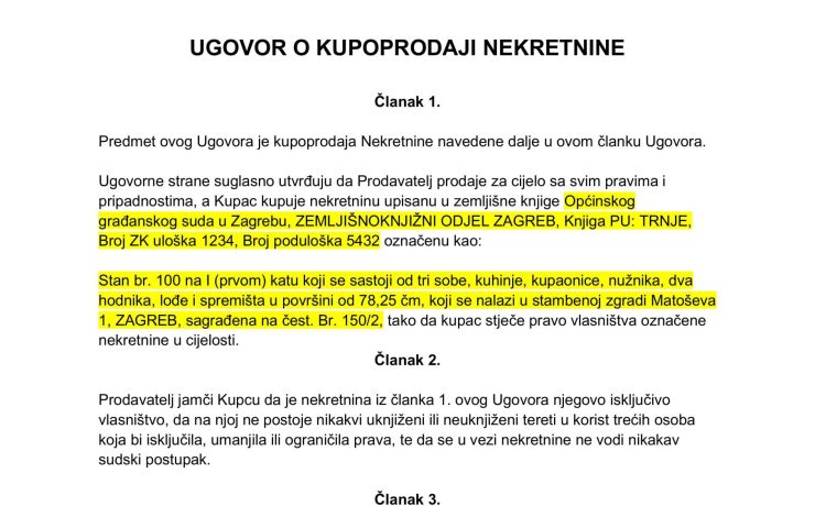Izjava da nekretnina nije bračna stečevina – Besplatan primjer